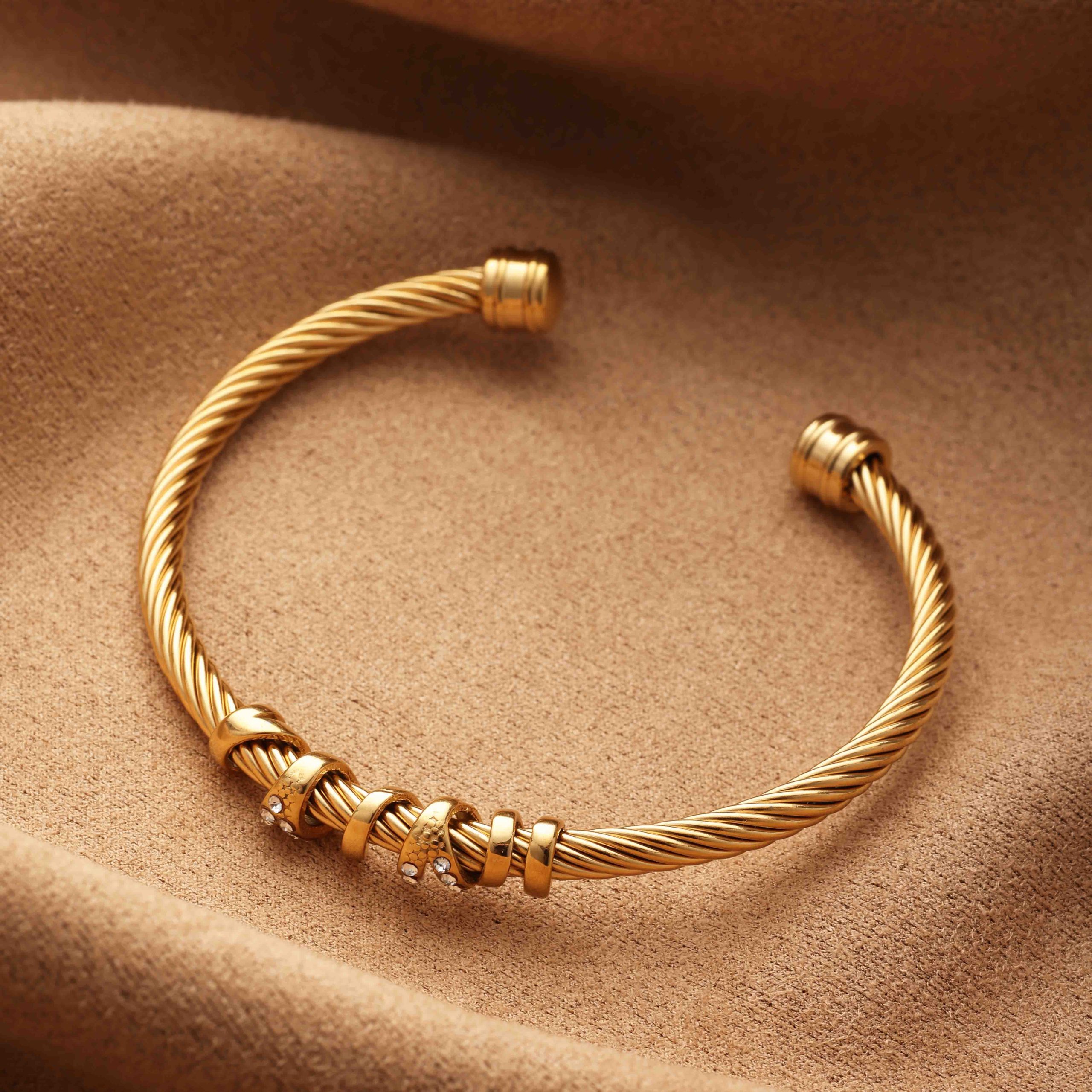 Gold Twisted Cable Stainless Steel Bangle – Crystal Wrap, Bold Elegance