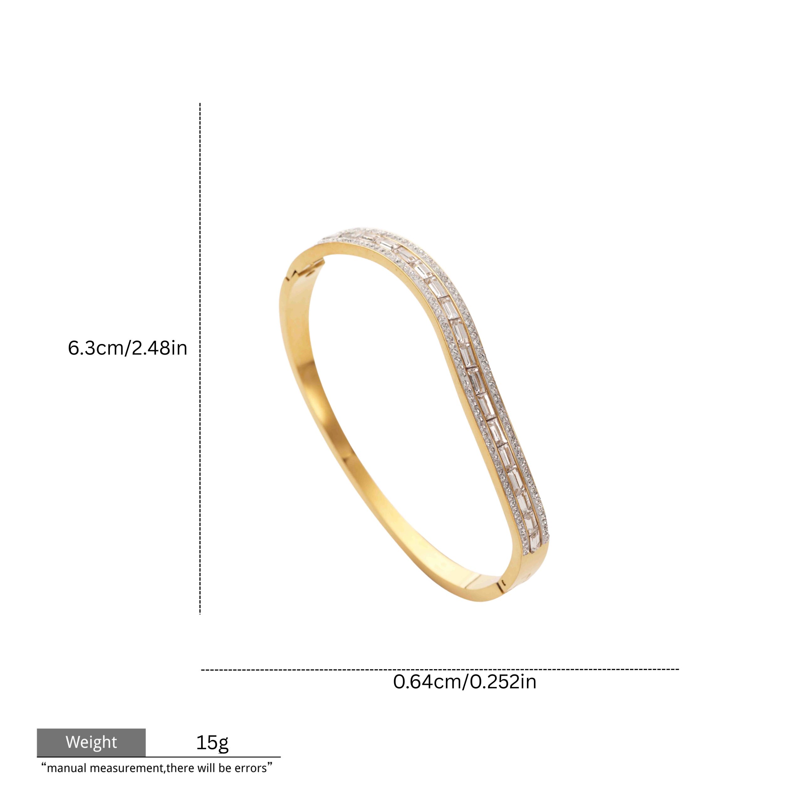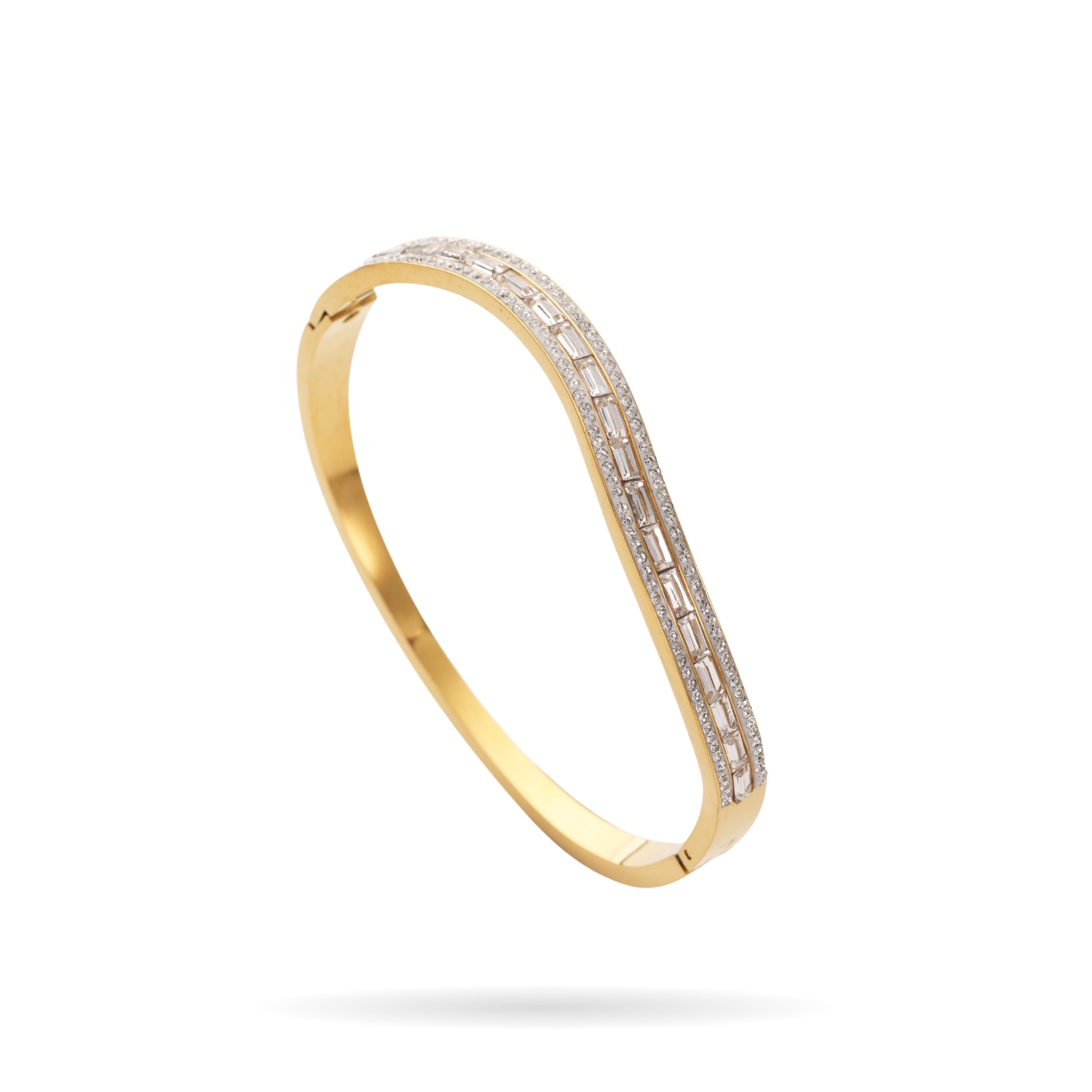 Elegant Gold Baguette Crystal Bangle – Modern Sparkling Design for Women