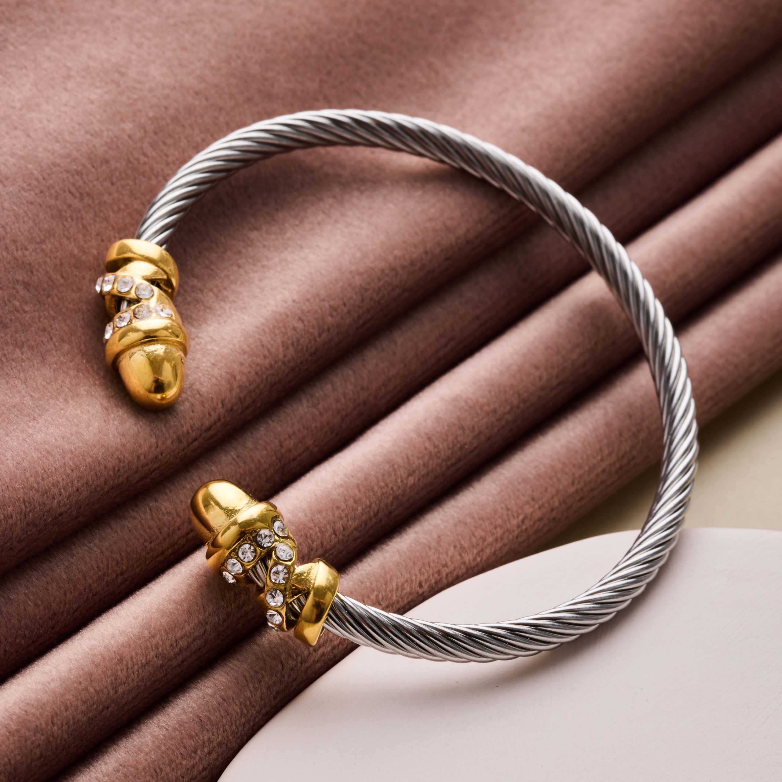 Chic Two-Tone Crystal Cable Bangle – Stylish Sparkle for Every Look