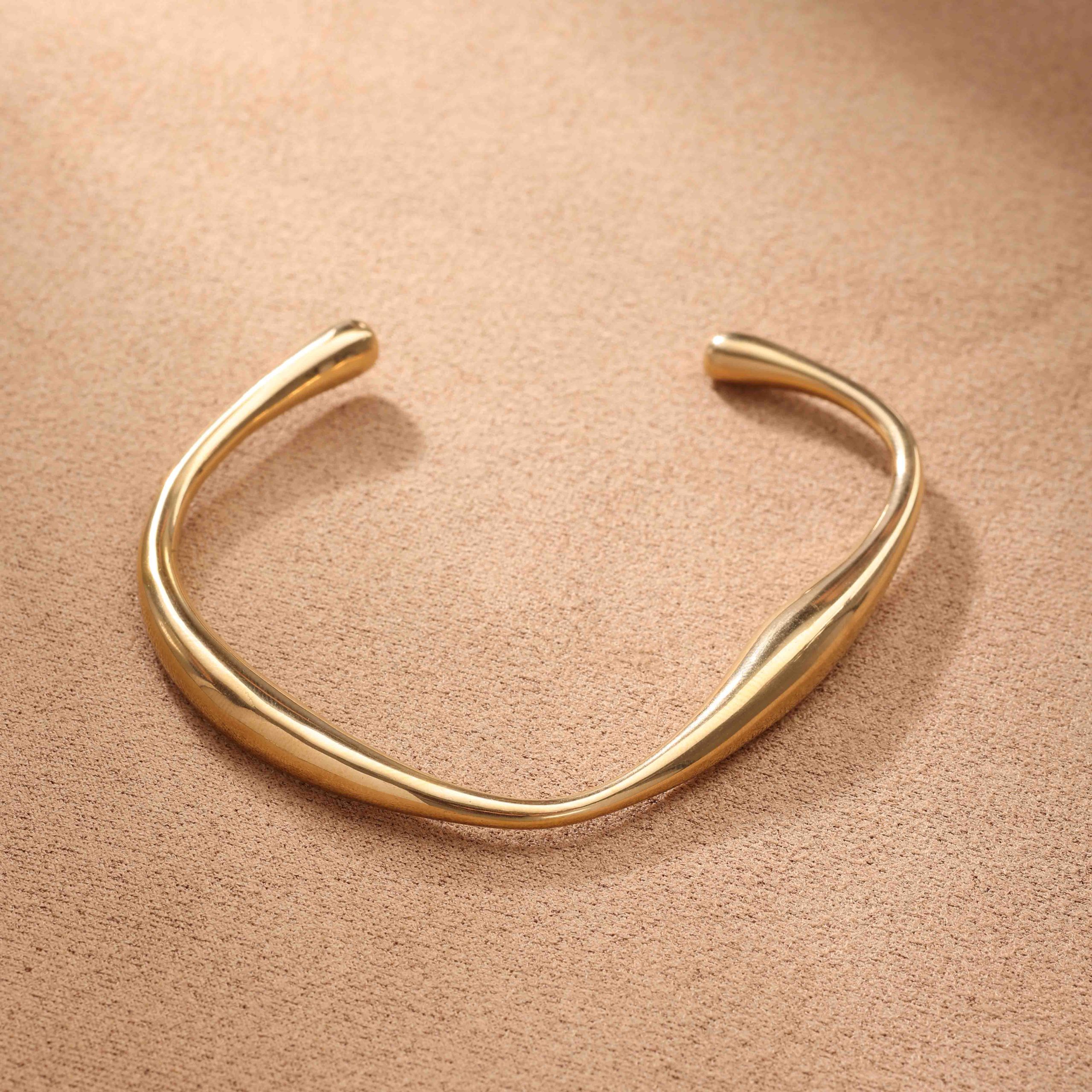 Gold Fluid Curve Stainless Steel Bangle – Sleek Minimalist Elegance