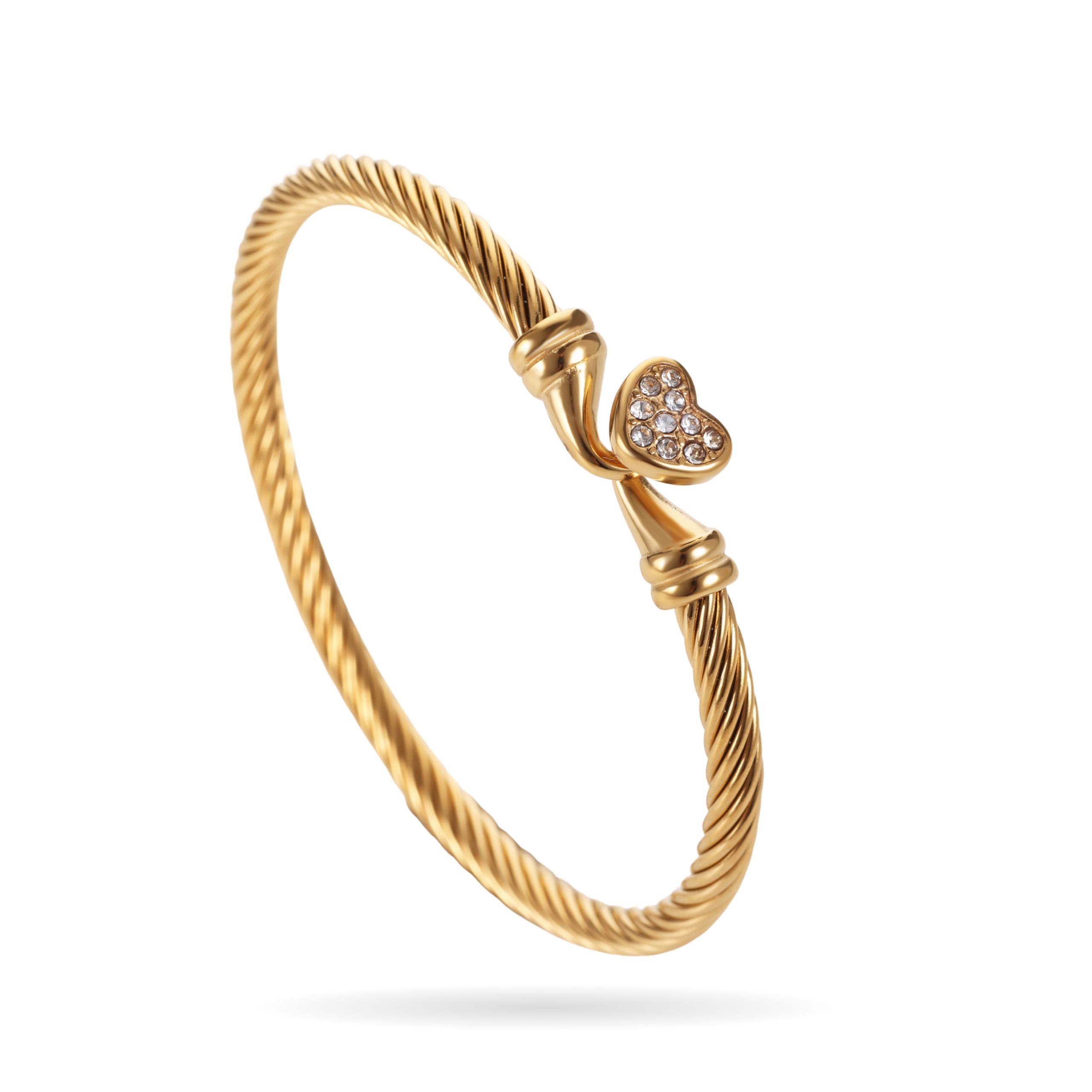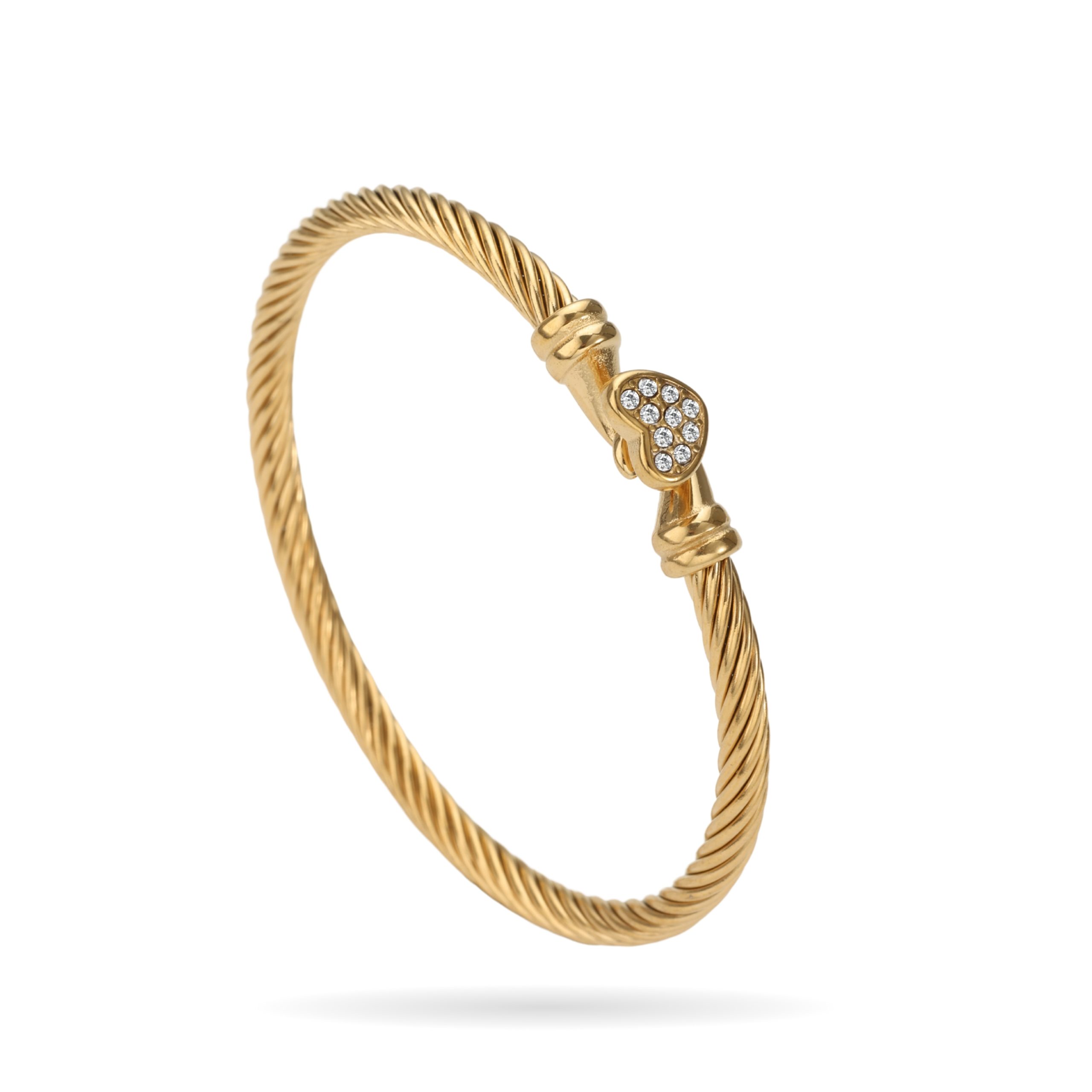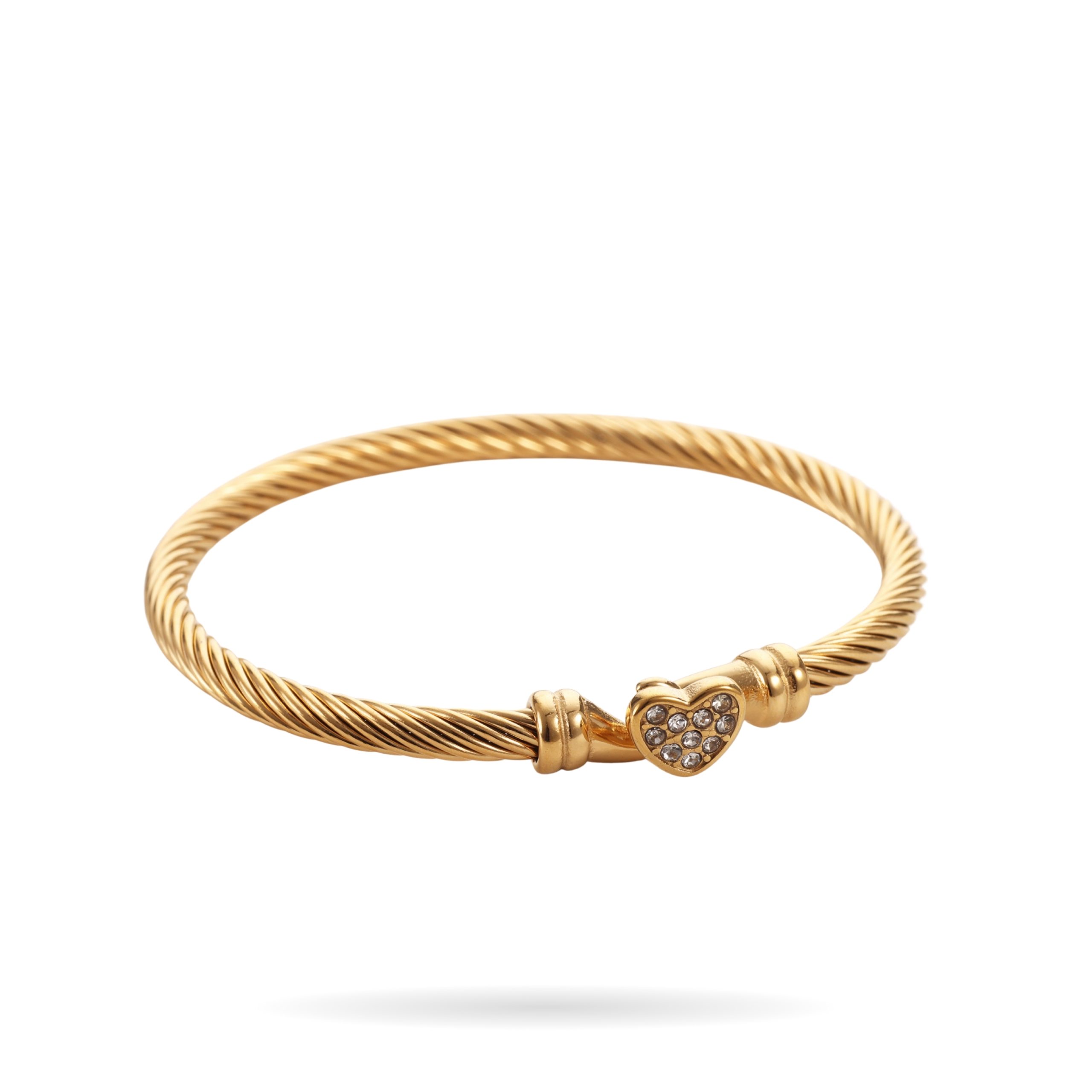 Gold Heart Clasp Twist Cable Stainless Steel Bangle – Sparkling Love Detail