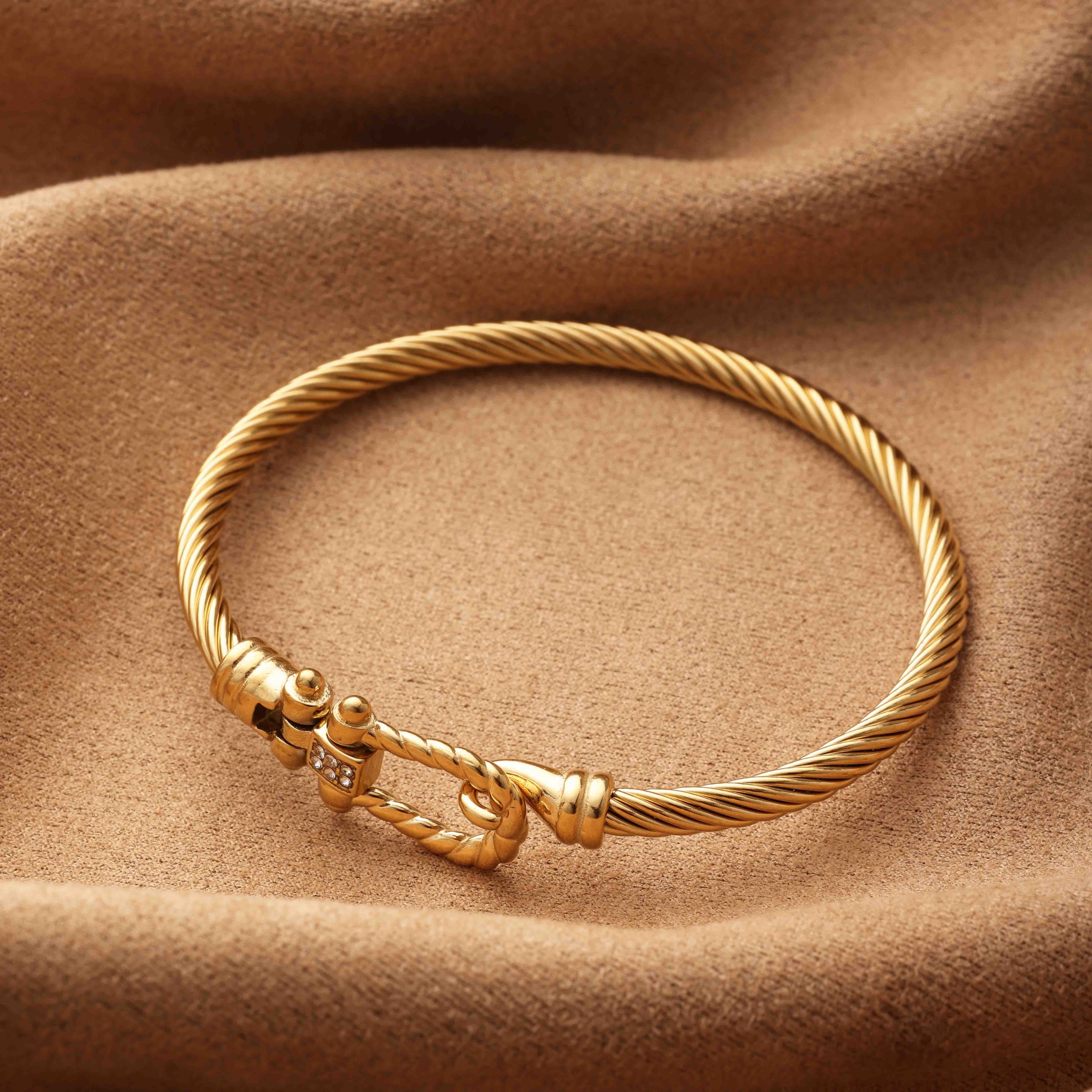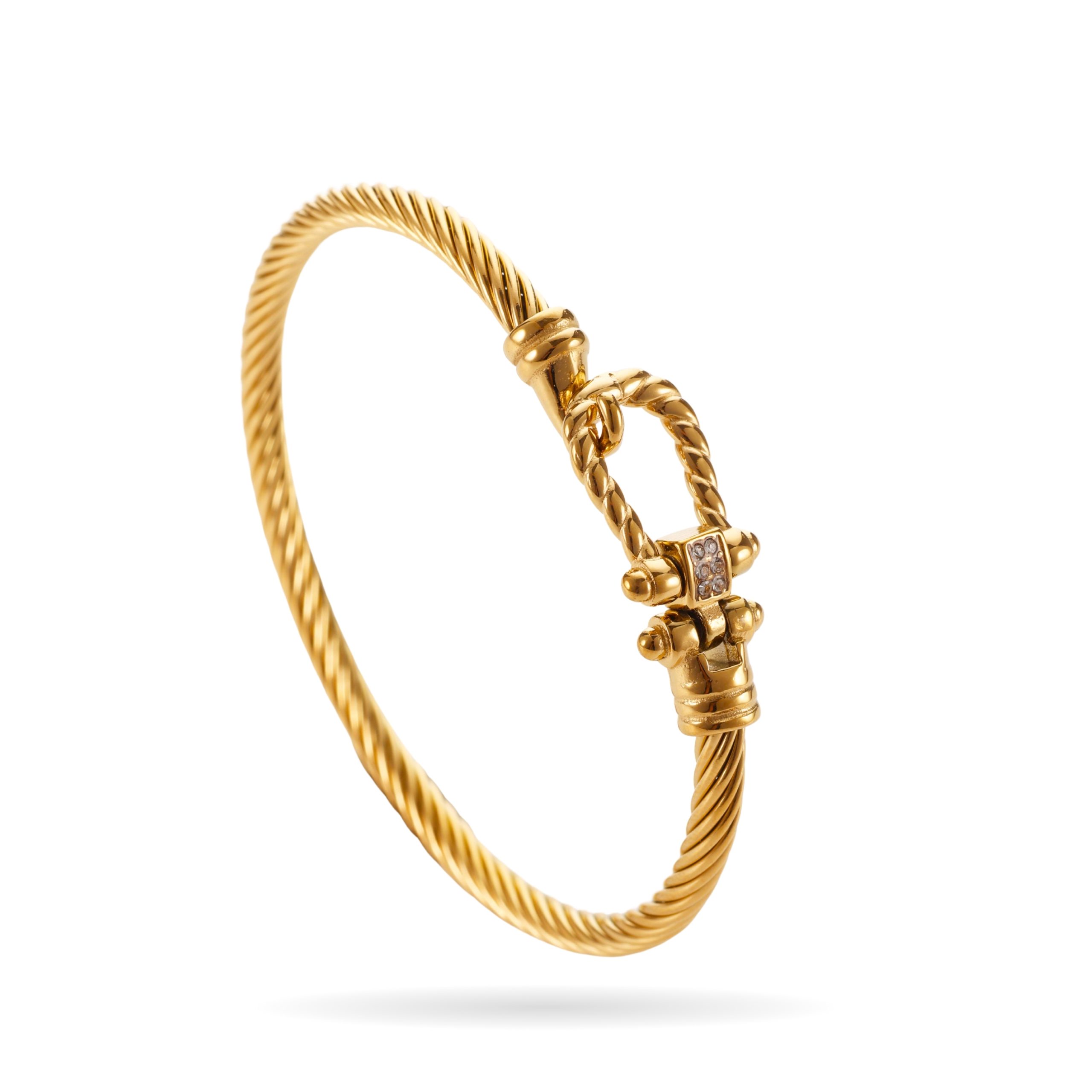 Gold Rope Buckle Stainless Steel Bangle – Bold Nautical Luxury Style