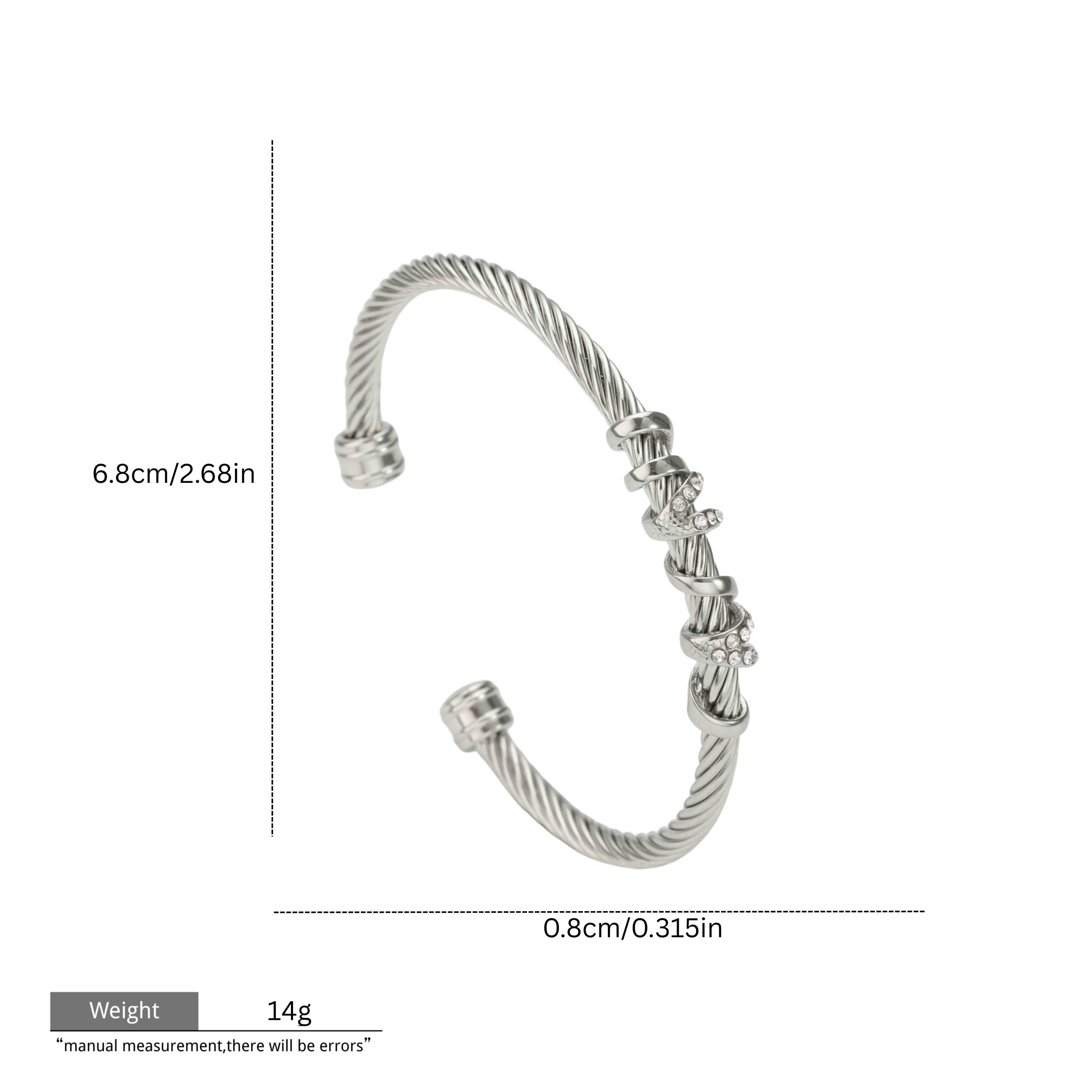Silver Twisted Cable Stainless Steel Bangle – Chic Sparkle, Minimal Edge