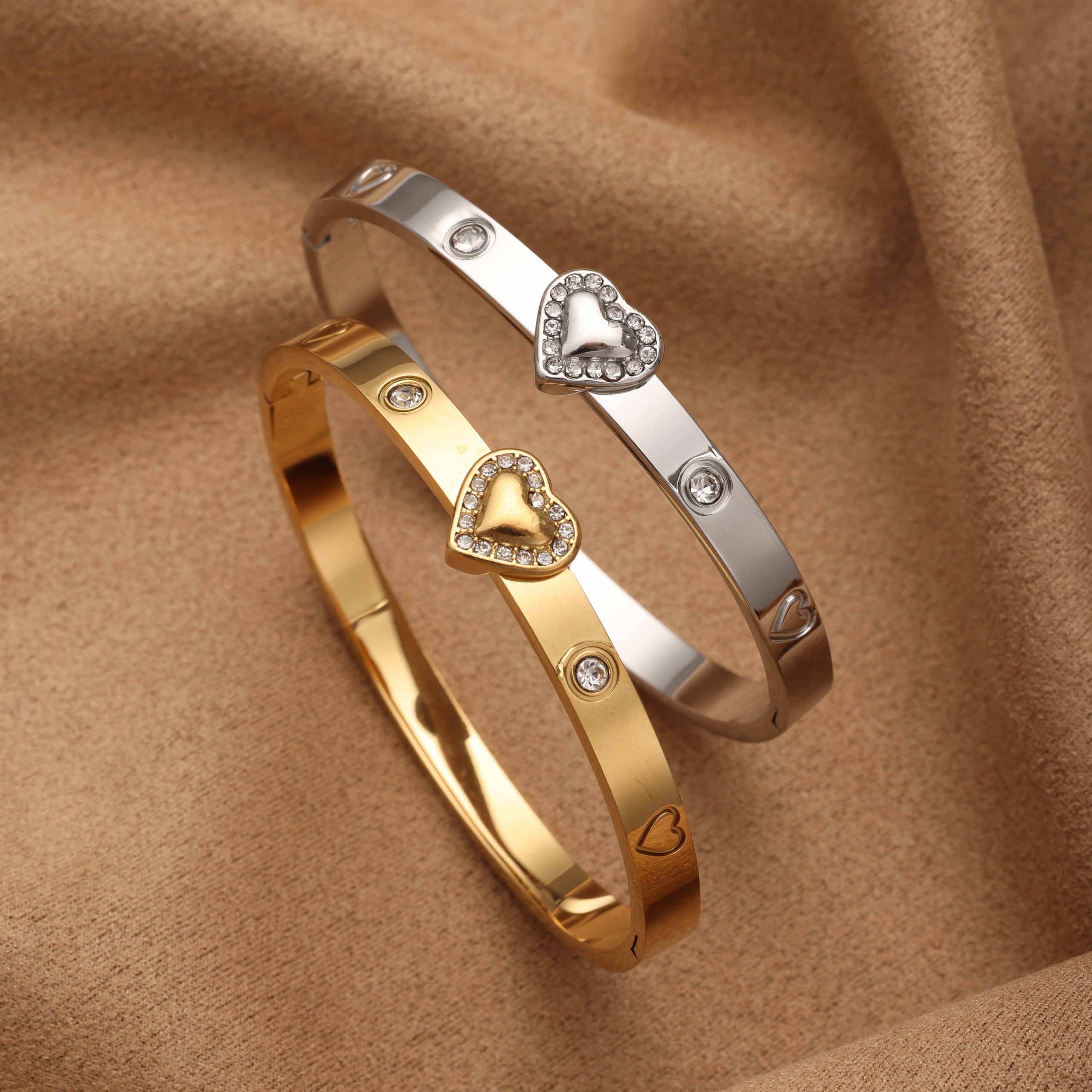 Heart-shaped Diamond Chic 18K Gold Plating Stainless Steel Bracelet