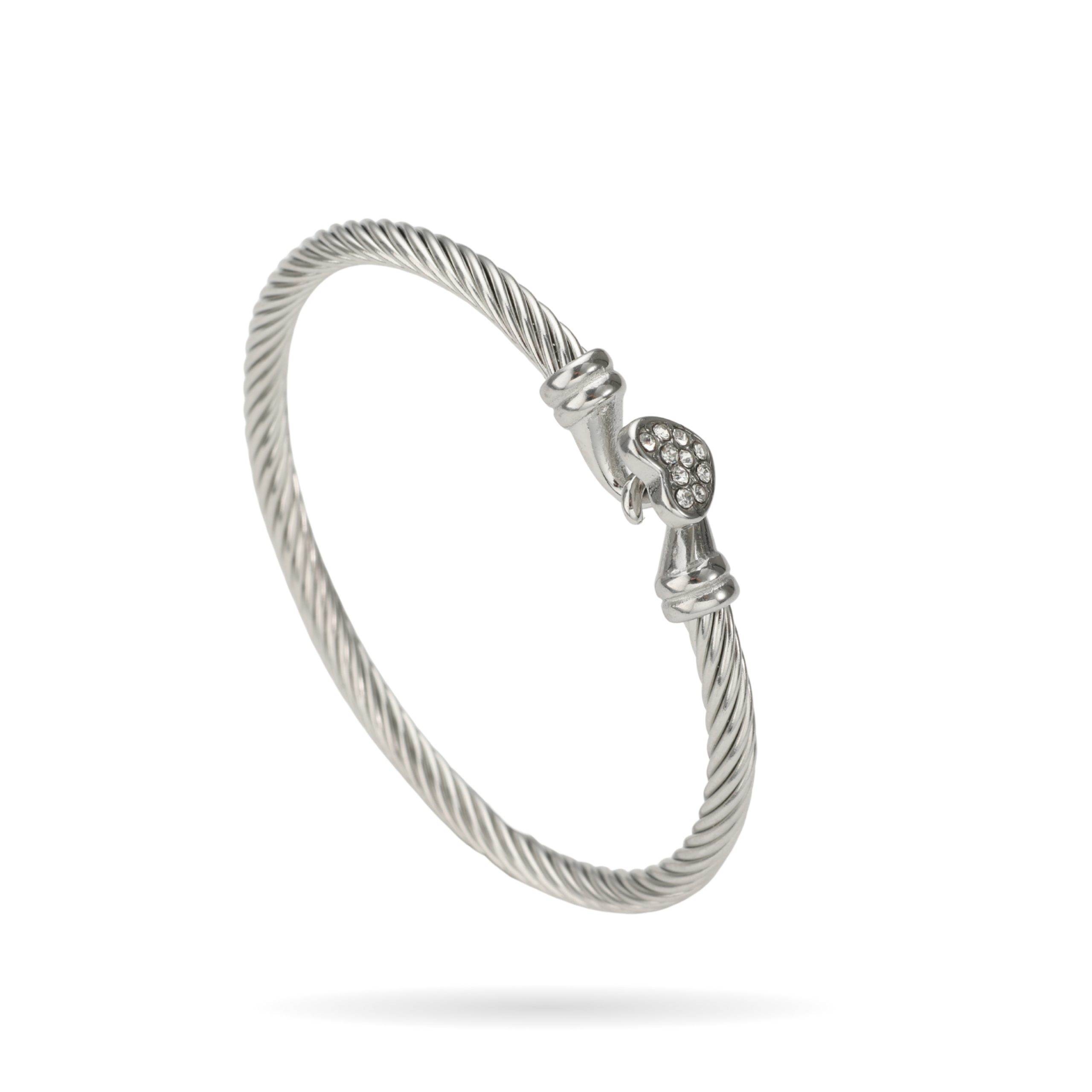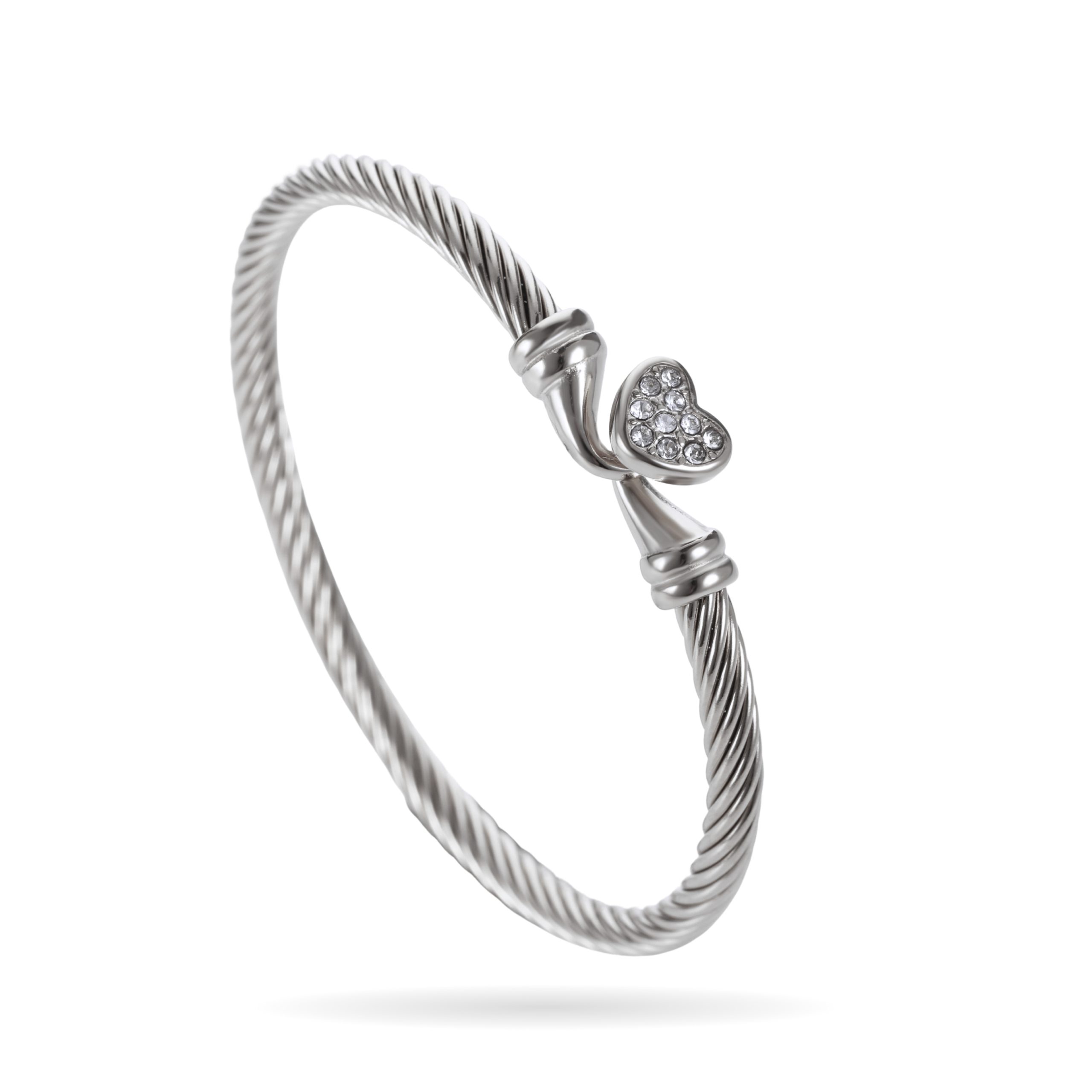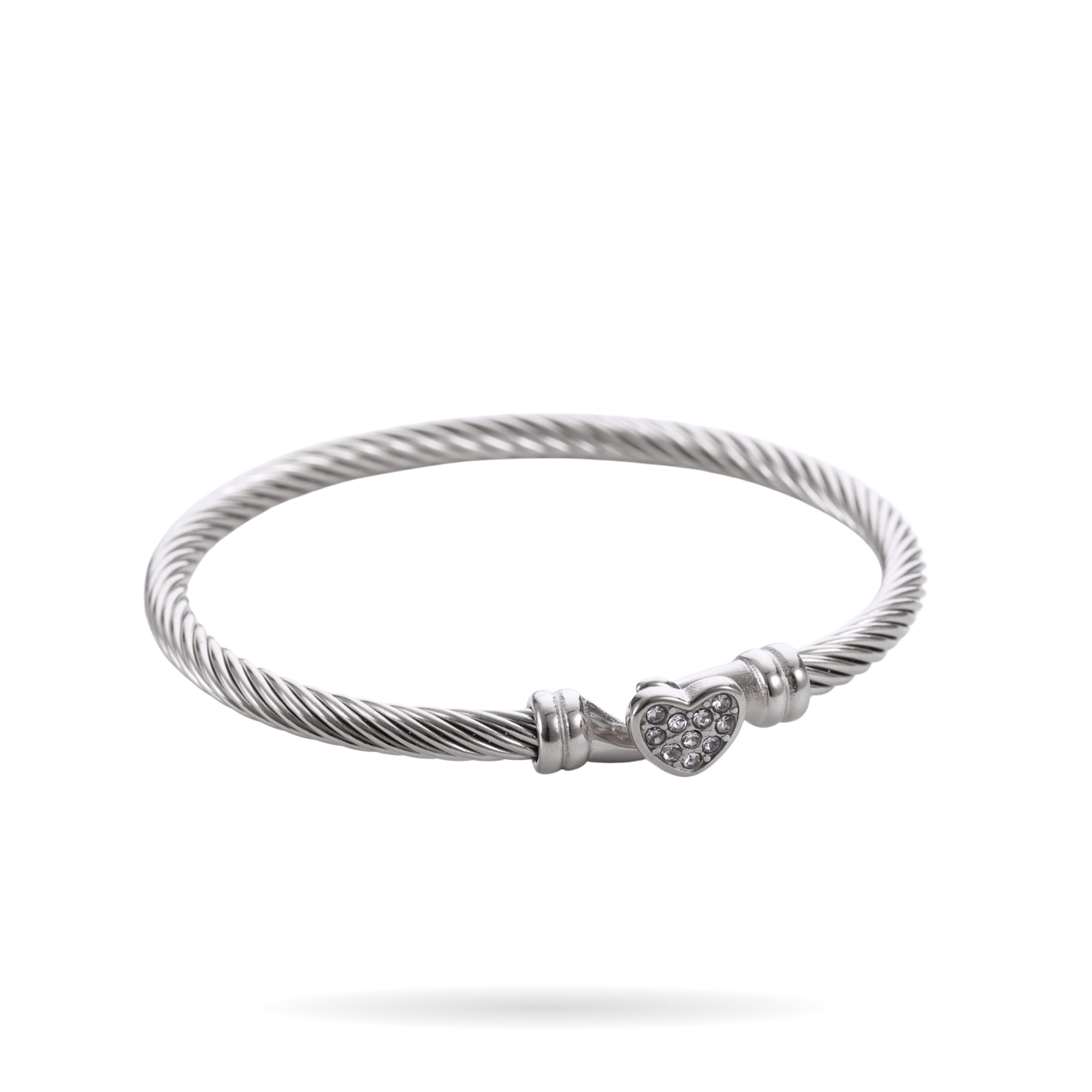 Silver Heart Clasp Twist Cable Stainless Steel Bangle – Modern Romance in Metal