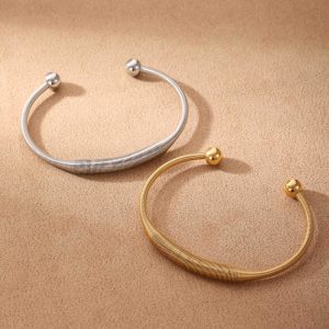Be the first to review “Silver Open Cable Cuff with Polished Ball Ends | Minimalist Industrial Style” Cancel reply