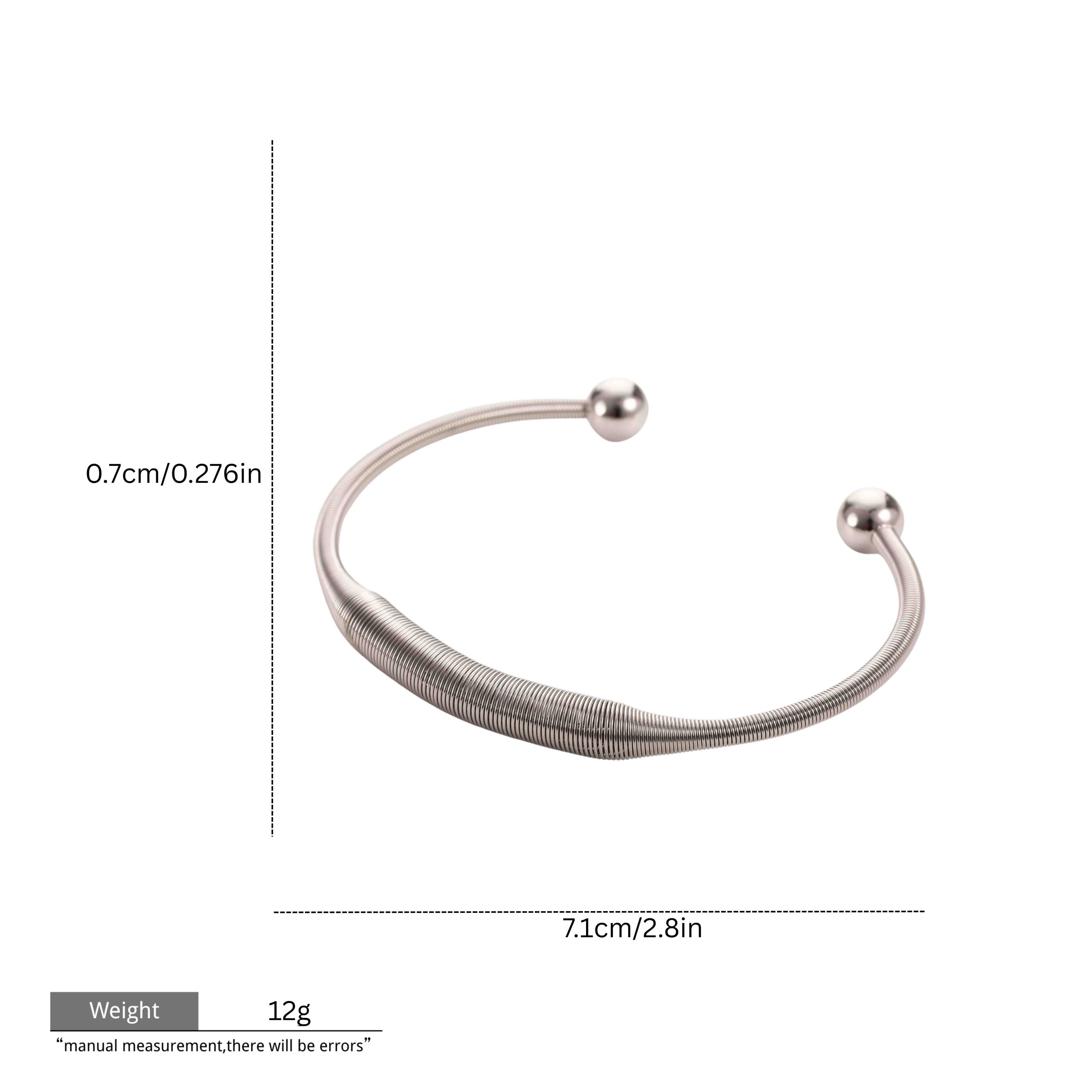 Silver Open Cable Cuff with Polished Ball Ends | Minimalist Industrial Style