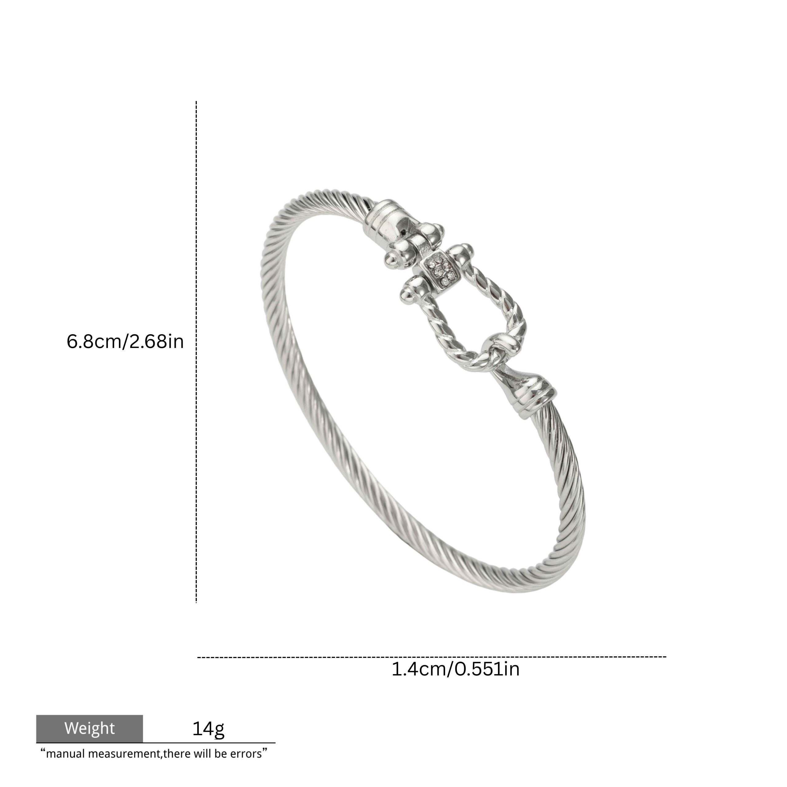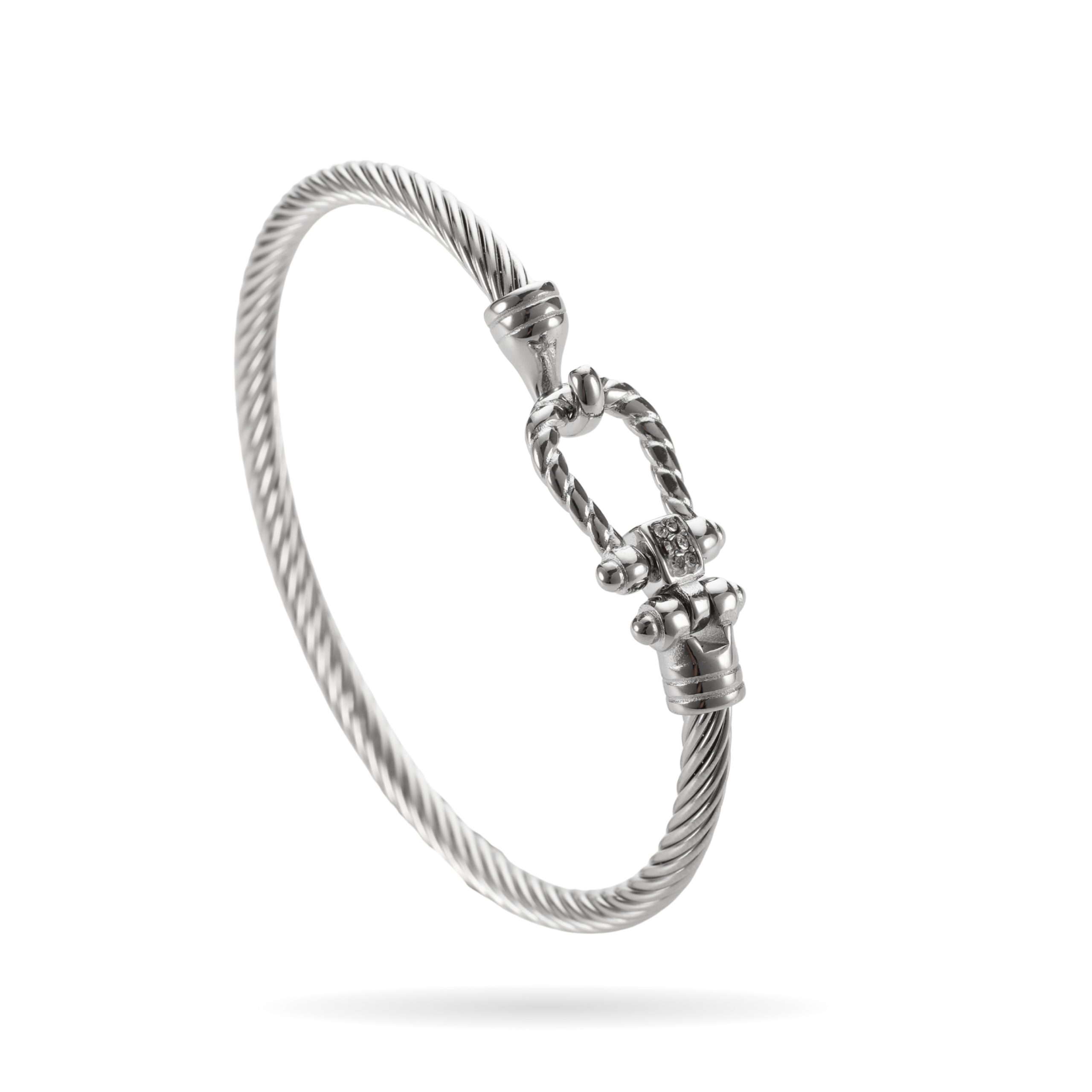 Silver Rope Buckle Stainless Steel Bangle – Modern Elegance with Sparkling Detail