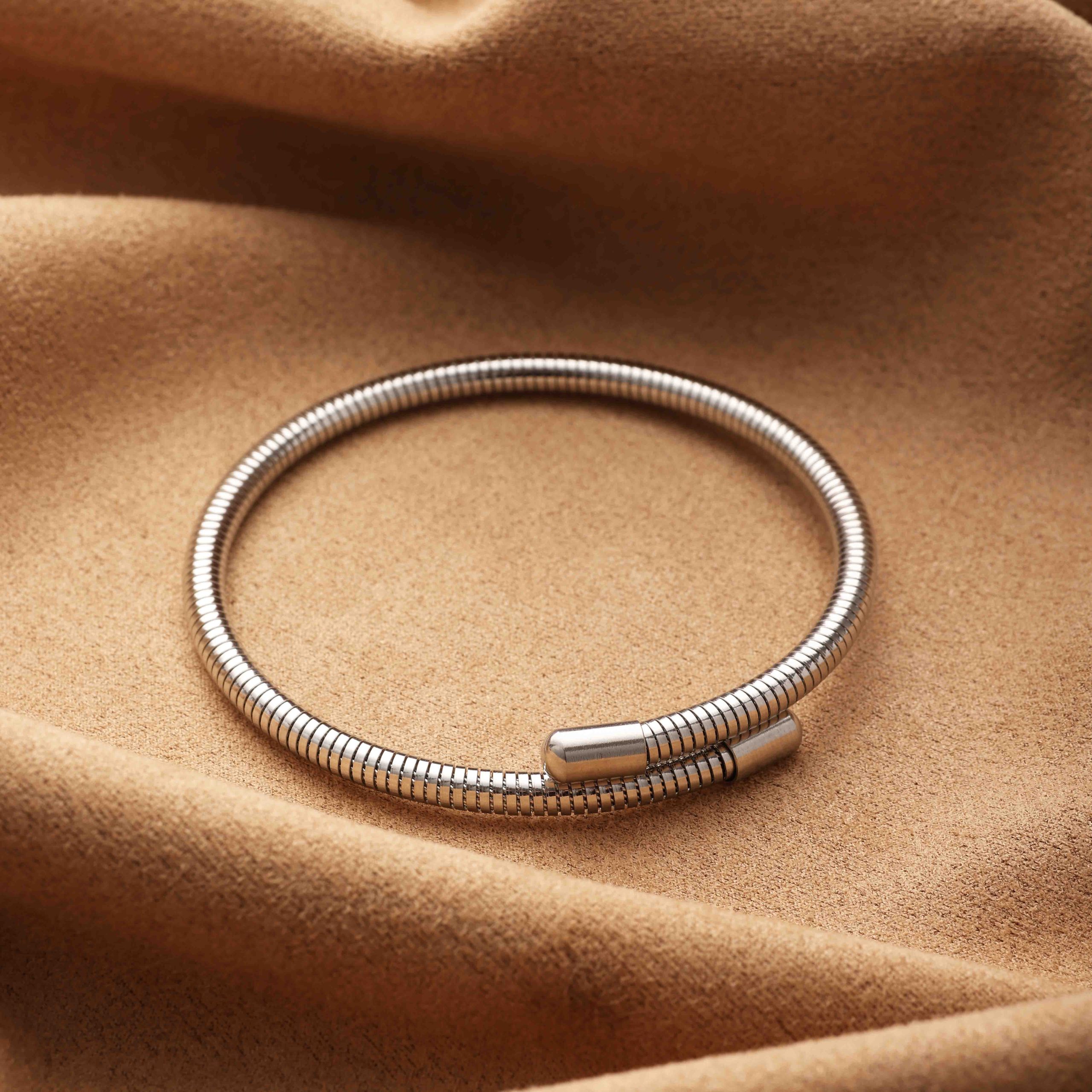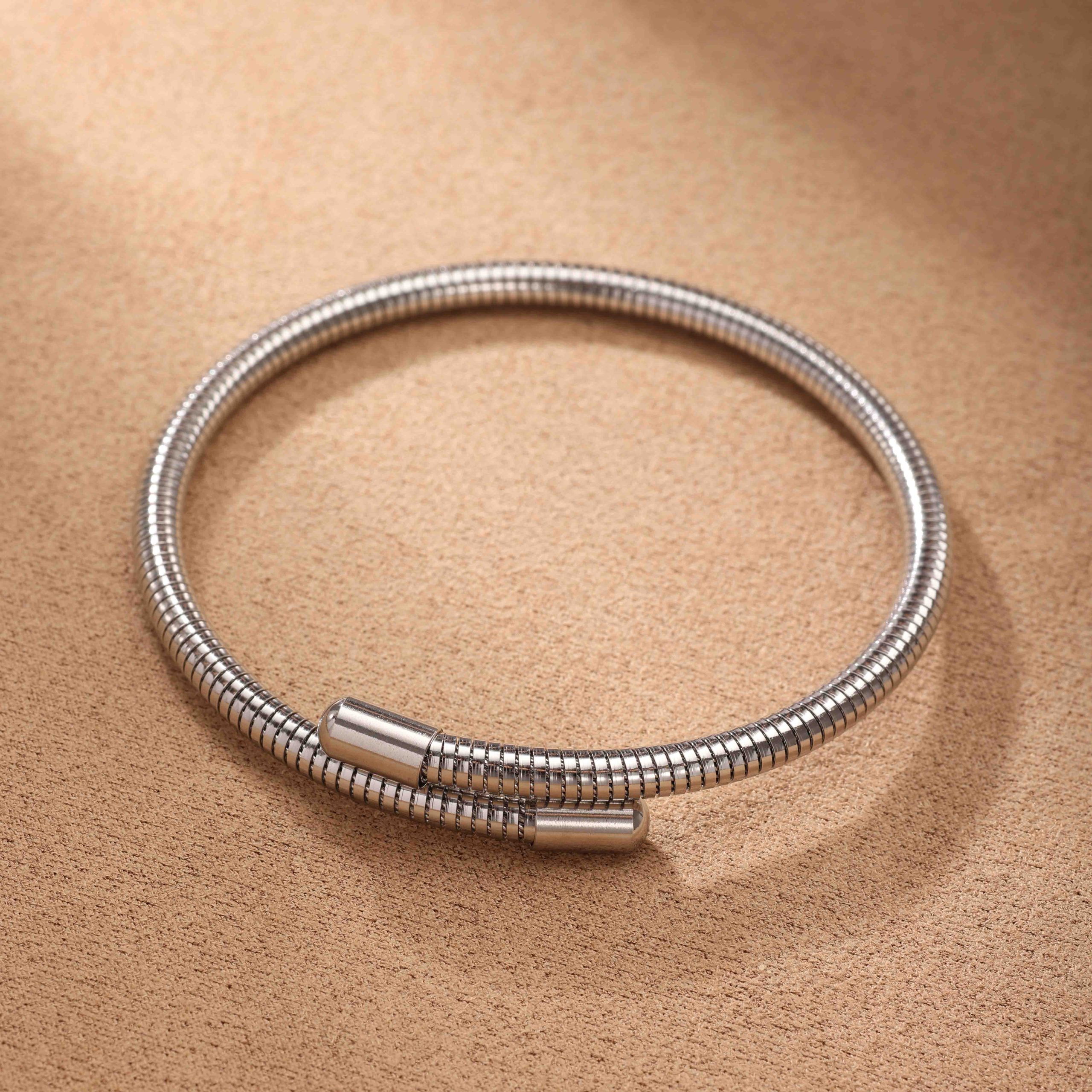 Silver Snake Chain Stainless Steel Bangle – Urban Chic with Futuristic Touch