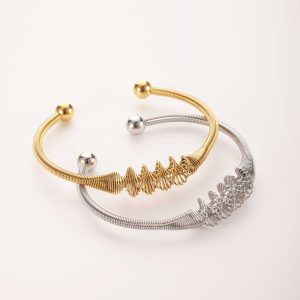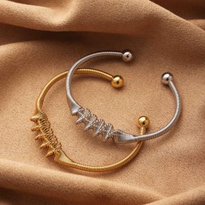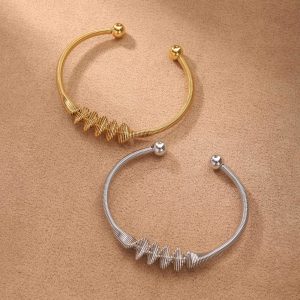 Be the first to review “Silver Stainless Steel Spiral Wire Open Cuff Bracelet – Modern Industrial Coil Bangle” Cancel reply