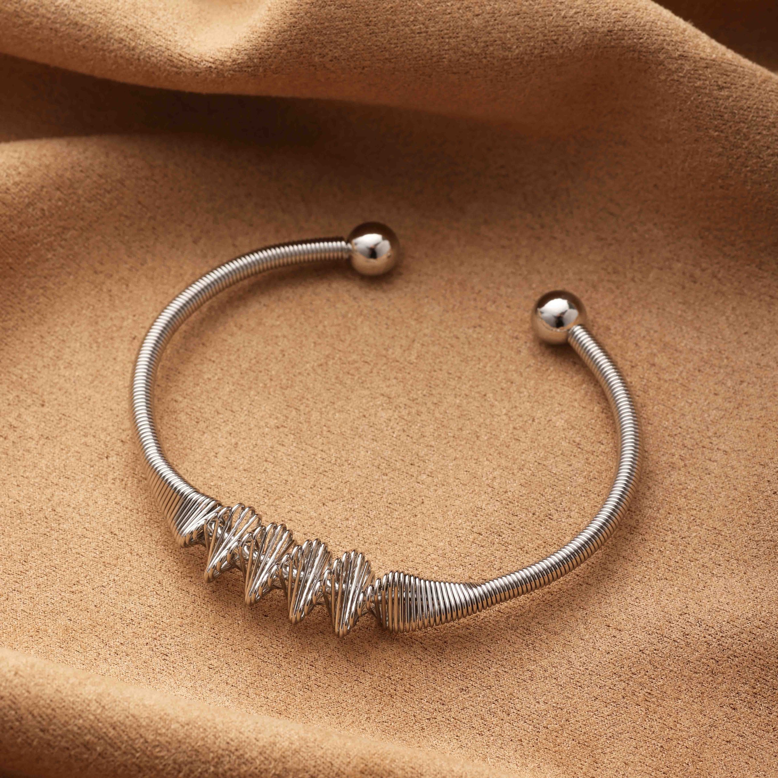 Silver Stainless Steel Spiral Wire Open Cuff Bracelet – Modern Industrial Coil Bangle