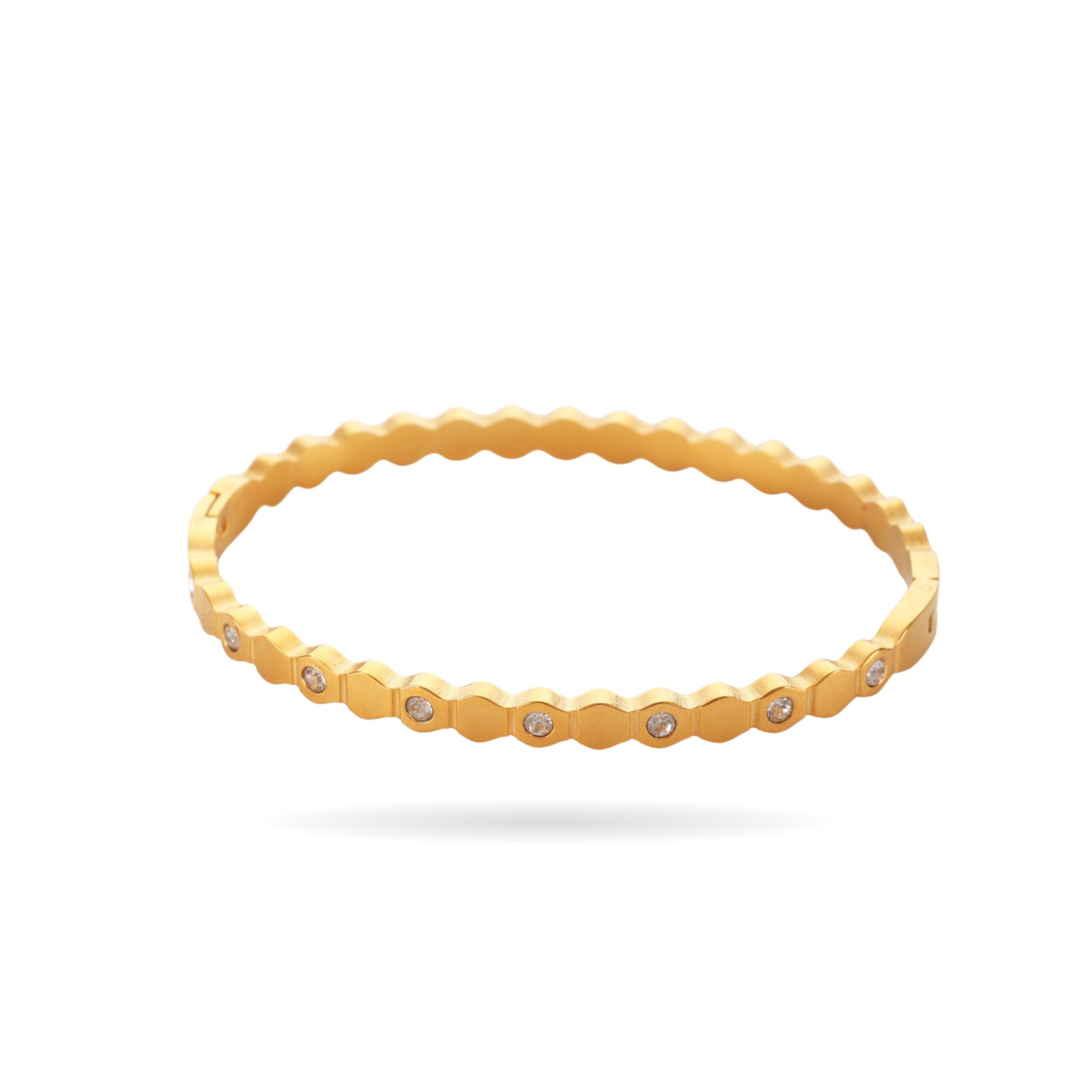 Gold Stainless Steel Hexa Bangle – Bold, Chic & Full of Shine