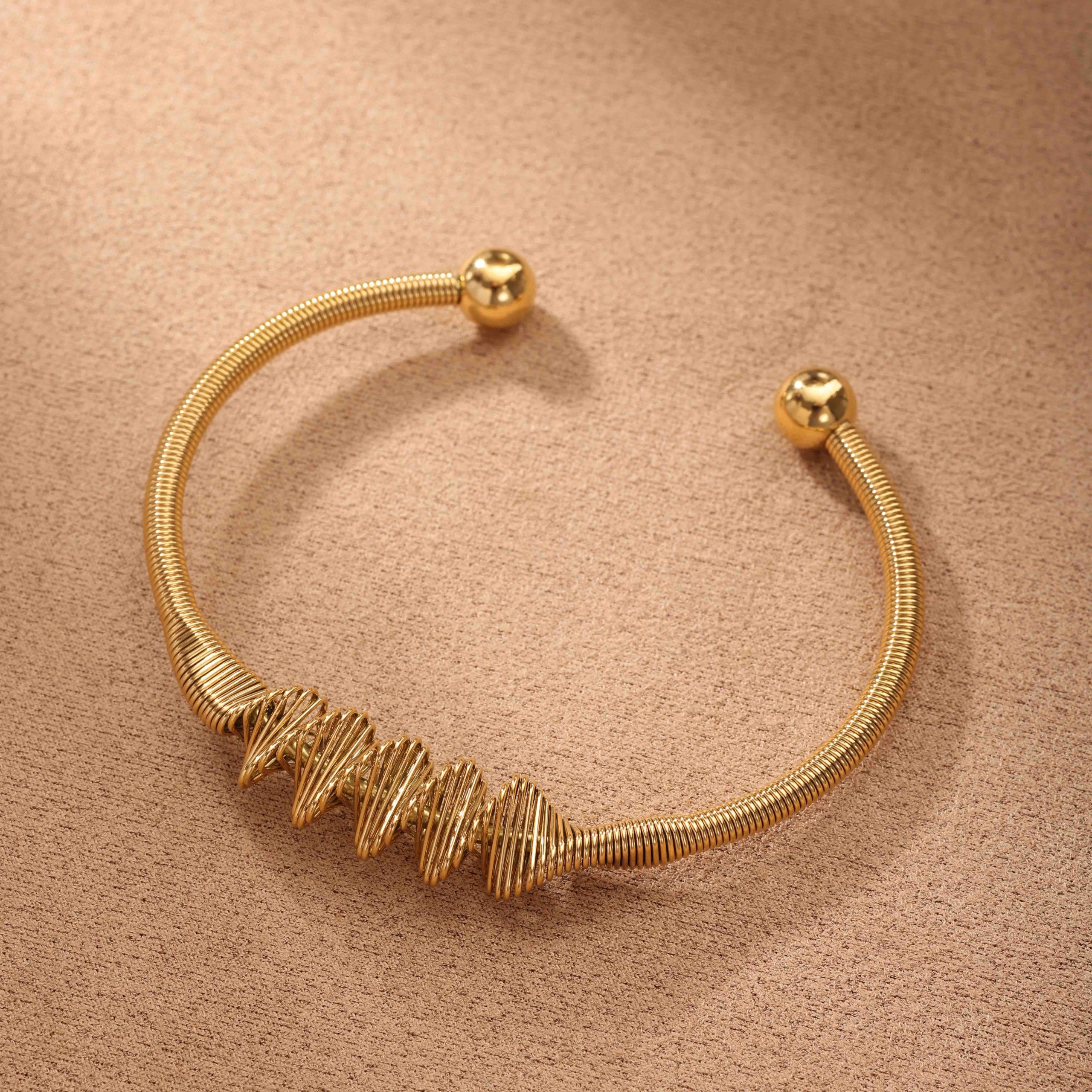 Gold Stainless Steel Spiral Wire Open Cuff Bracelet – Minimalist Coil Design Bangle